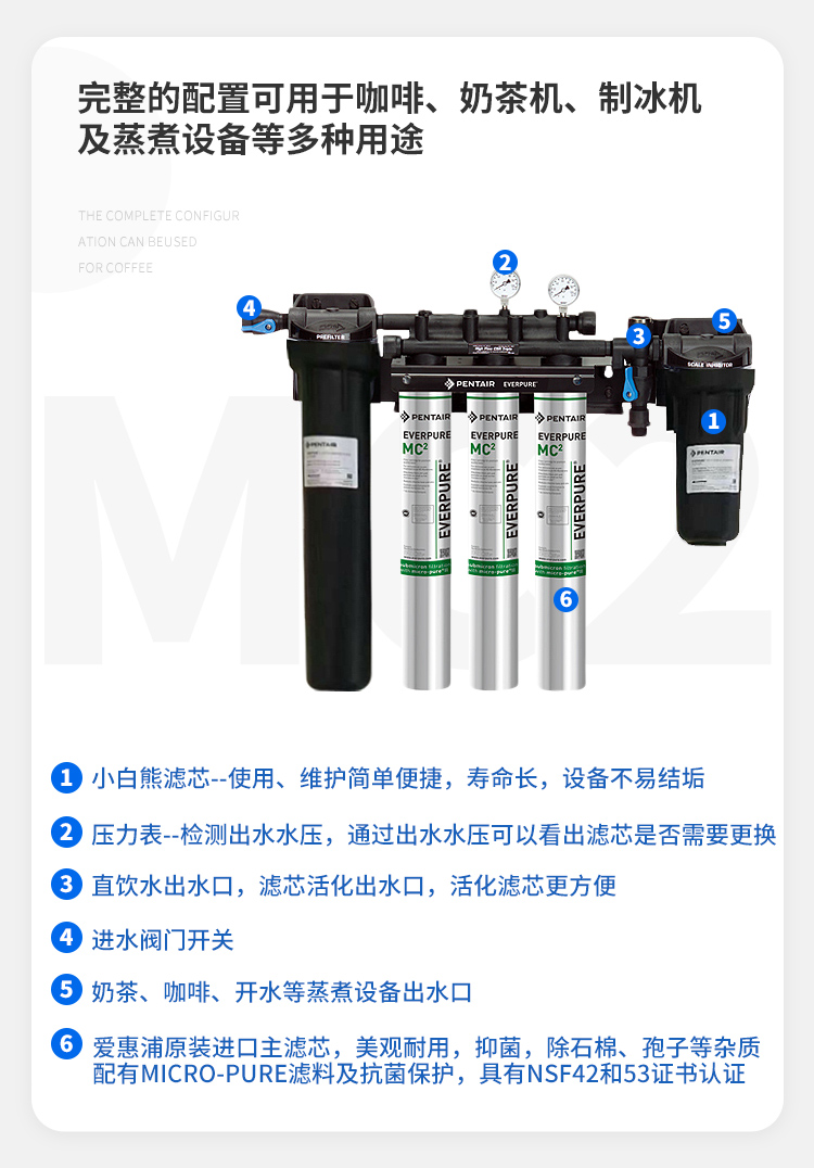 完整的系统配置可用于包括咖啡、汽水机、直饮及蒸煮设备等多种用途。