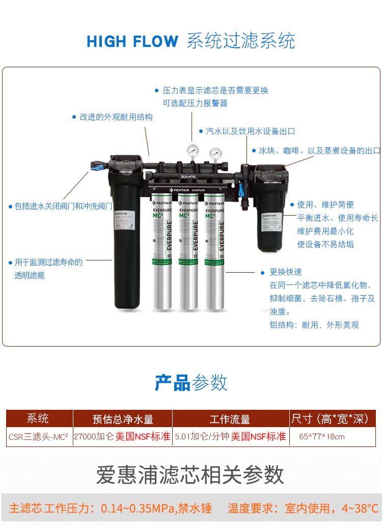 | 爱惠浦CSR三联三滤头HIGH FLOW系统商用净水器产品说明书 |