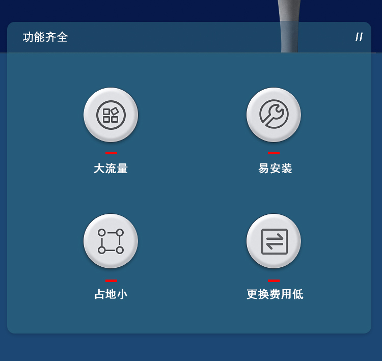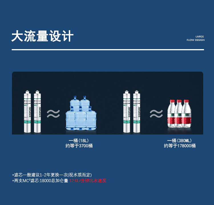 ▶超大处理量:18000加仑/70吨/3600桶装水(以双滤头为例)