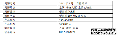 爱惠浦新品SPA-400型净水器检测